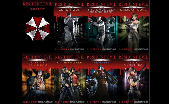La saga literaria cuenta con siete volúmenes (ordenados por año de publicación) que son Conspiración Umbrella, La Ensenada Calibán, La Ciudad de los Muertos, Inframundo, Némesis, Código Verónica y Hora Zero. Todos a excepción del segundo y el cuarto narran los hechos ocurridos en los cuatro primeros juegos de la serie (cero al tres) y Código Verónica. Los otros dos ejemplares son historias originales creadas por Perry en las que sitúa a algunos de los héroes ya conocidos de la saga con otros completamente inéditos en contraparte con el videojuego. En estos, por ejemplo, se mencionan a otros integrantes del grupo más famoso de la saga, los STARS, grupo de fuerzas especiales que tienen presencia en cada estado de la unión americana. Con este argumento se arma un nuevo equipo (de diferentes lados de Estados Unidos) para aplastar de una vez a la corporación farmacéutica más temible del mundo, esto sin lugar a dudas es una gran apuesta por parte de la autora que se agradeció bastante.
